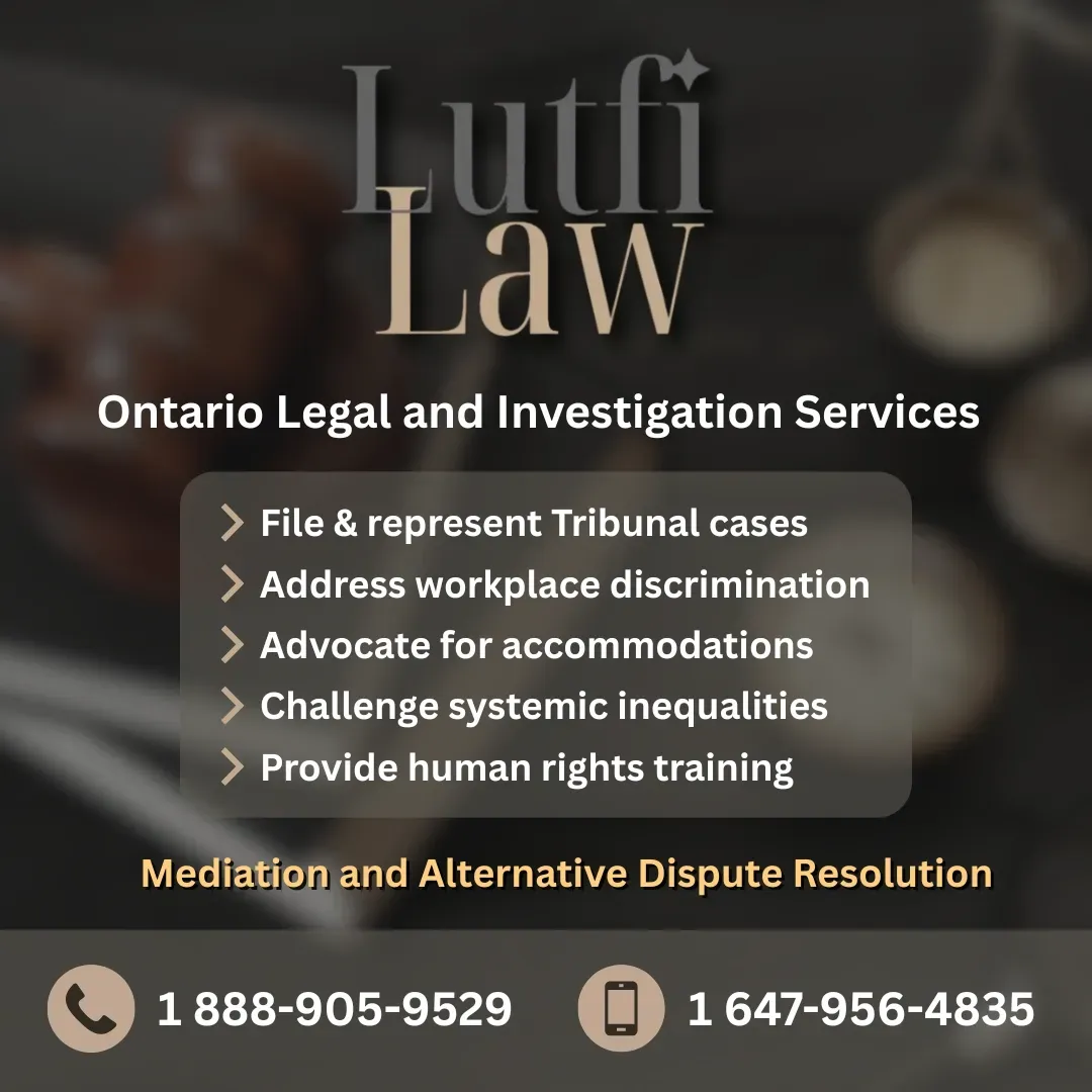 Lutfi Law offers expert human rights legal services across Ontario, helping organizations and individuals address discrimination, harassment, and equality issues with fairness and confidentiality.